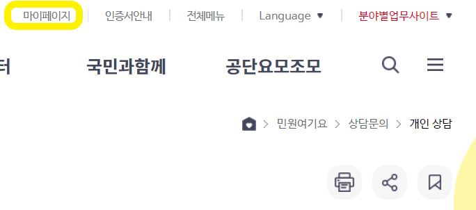개인 상담 답변 확인은 국민건강보험공단 홈페이지> 마이페이지에서 확인 가능합니다.