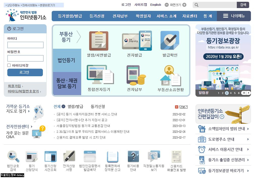 인터넷등기소 이용은 하단의 대법원 인터넷 등기소 홈페이지 바로가기에서 지금 바로 편리하게 등기 서비스를 이용할 수 있답니다!!!