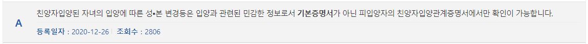 A 친양자 입양된 자녀의 입양에 따른 성, 본 변경은 입양과 관한 민감한 정보로 분류되어 기본증명서가 아니라 피입양자의 친양자입양관계증명서에서만 확인이 가능합니다.