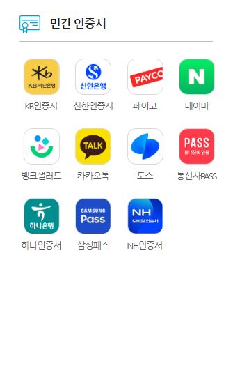 7. 본인확인을 하는 절차는 필수이며 평소 이용하는 본인확인 인증서를 이용하면 됩니다. 처음 이용하는 경우 공동인증서, 금융인증서, 간편인증 중 선택하여 발급이 필요하며 최초 발급 이후에는 원할 때 언제든지 사용 가능하니 한 번쯤은 발급해 두는 것이 좋습니다. 간편 인증은 민간 인증서를 말하며 KB인증서, 신한인증서 등이 있으니 하단 간편 인증 목록을 참고하시기 바랍니다. 본인확인 후 기본증명서 발급창으로 이동합니다.