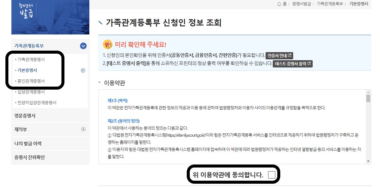 기본증명서 신청방법