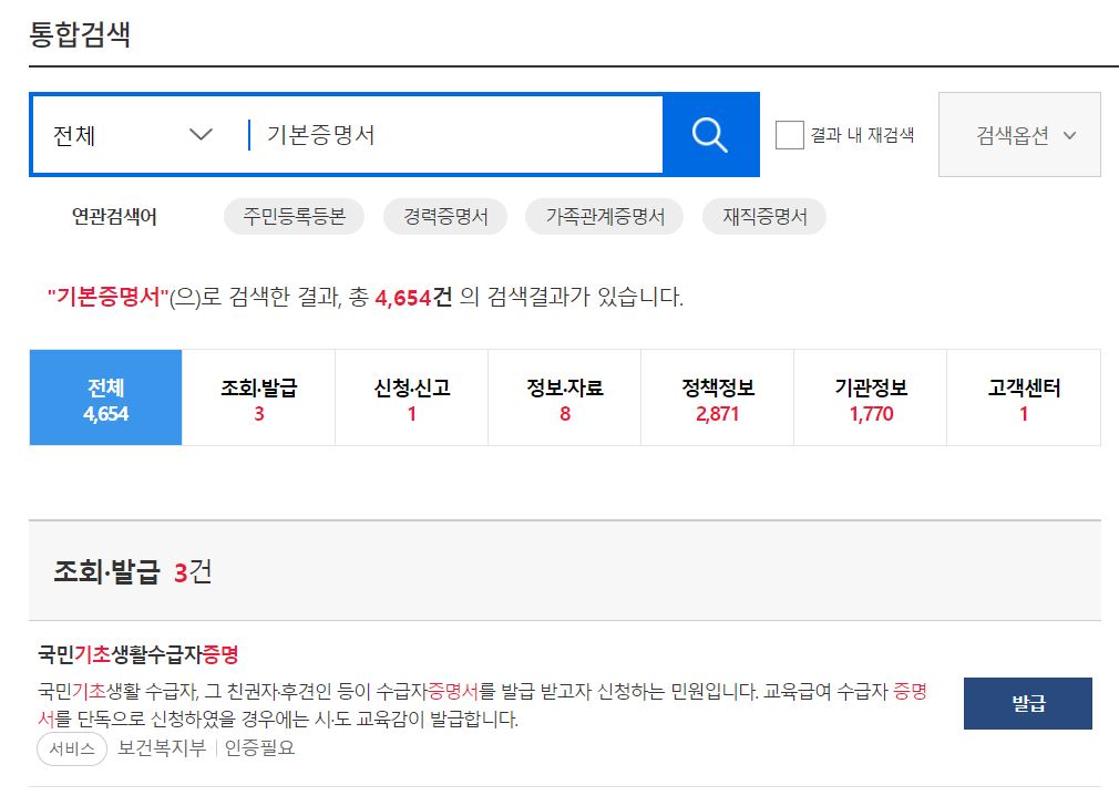 정부 24 기본증명서 인터넷 발급 하는 방법