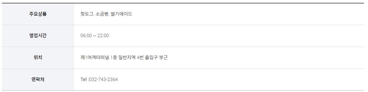호호밀은 분식류를 파는 곳으로 김밥, 떡볶이, 라면, 쫄면, 국수, 오므라이스, 치즈라볶이 등의 메뉴가 있습니다~ 오픈시간은 07:30 이고 20:30까지 영업을 하며 월요일부터 금요일까지 매장을 운영합니다. 위치는 제1여객터미널 지하 1층 중앙에 있습니다.