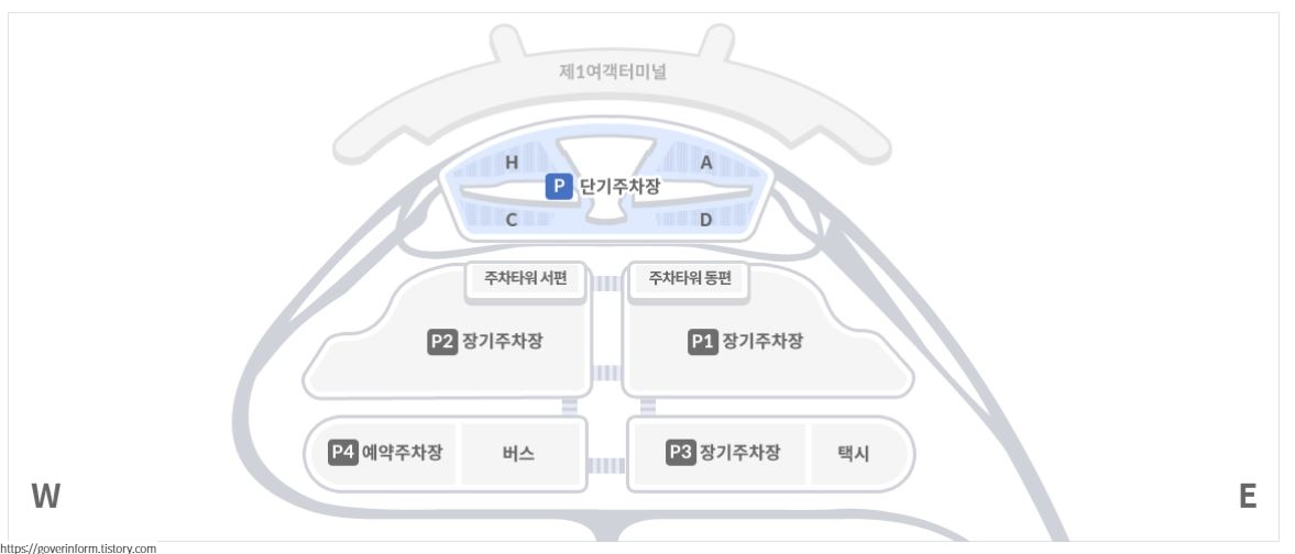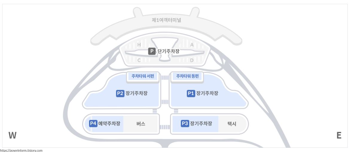 2) 장기주차장- 장기주차장은 동편에 장기주차장P1, 주차타워 동편, 장기주차장 P3가 있고 서편에는 장기주차 P2, 주차타워 서편이 있습니다.