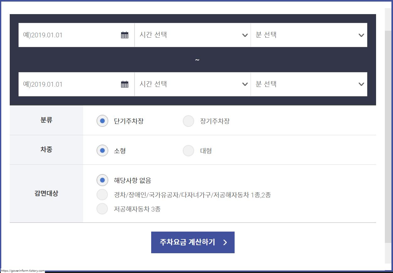 주차요금 계산기를 이용하여 예상 주차요금 확인을 할 수 있습니다.
