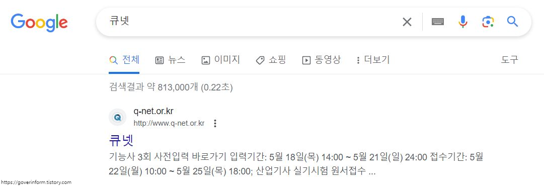 1. 구글 검색창에 "큐넷"을 입력하고 검색합니다.
