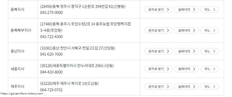 지부/지사 연락처는 지역본부 지사 검색하기에서 이용 가능합니다.