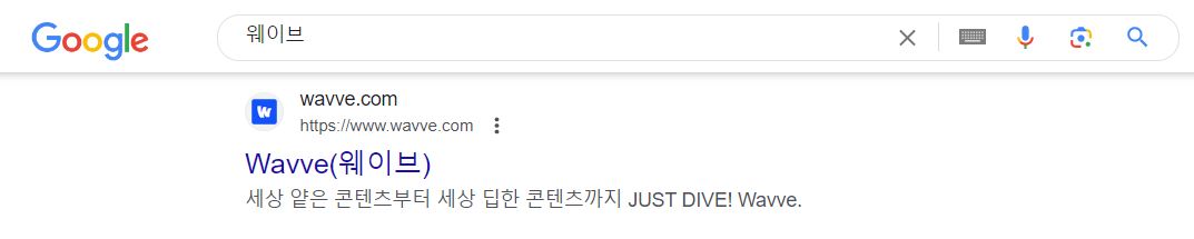 웨이브 wavve.com홈페이지 방문하는 방법은 구글 검색창에 웨이브를 입력하면 홈페이지 주소가 나옵니다.