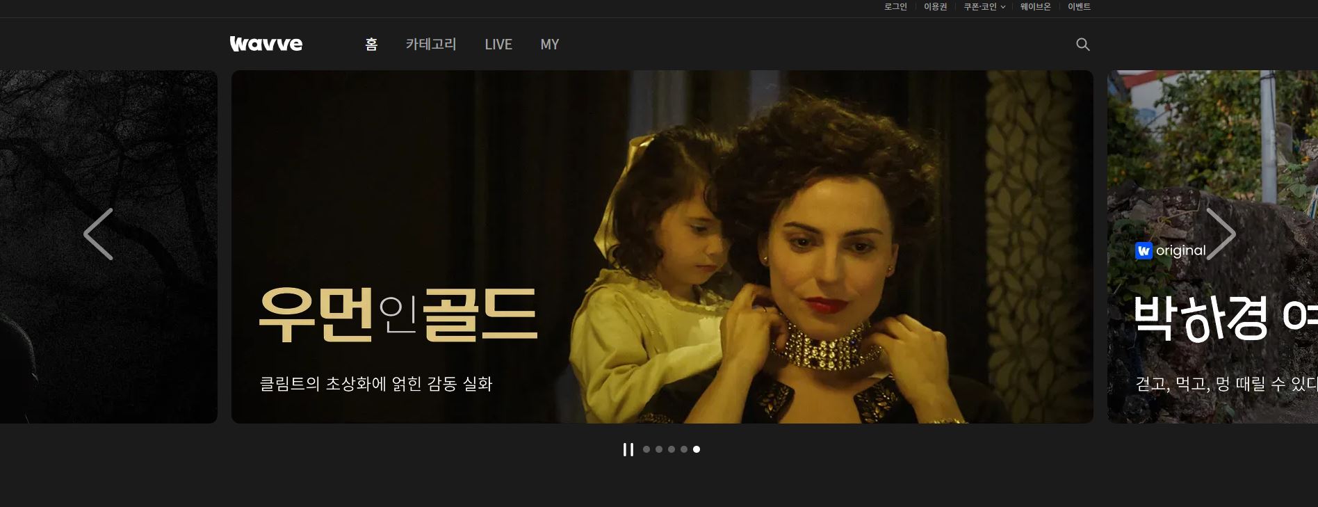 웨이브 홈페이지에 접근하면 아래와 같은 첫 화면을 볼 수 있습니다.