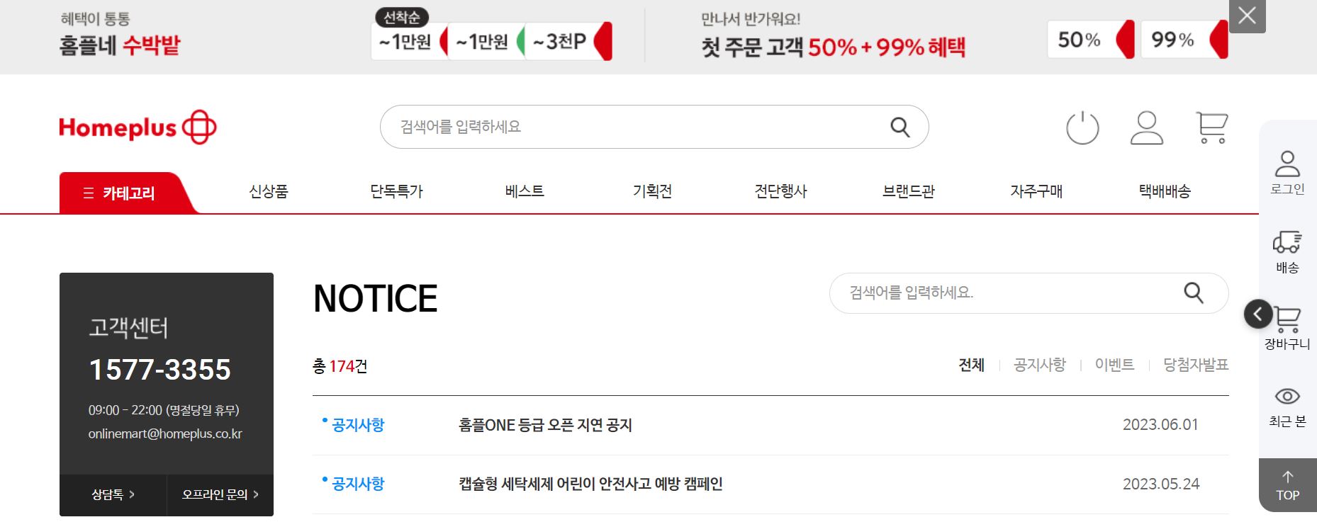 홈플러스 고객센터에서 이용 가능한 서비스는 아래와 같습니다.