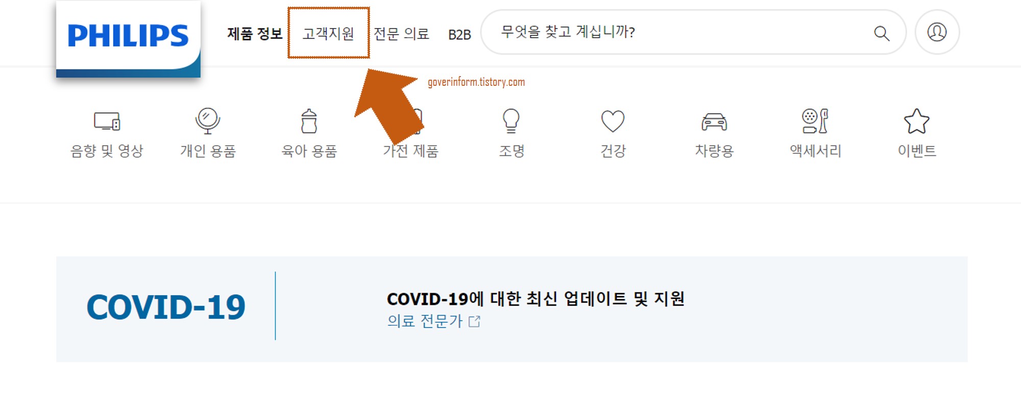 01. 먼저, 필립스 공식 홈페이지(https://www.philips.co.kr)에 접근합니다.
