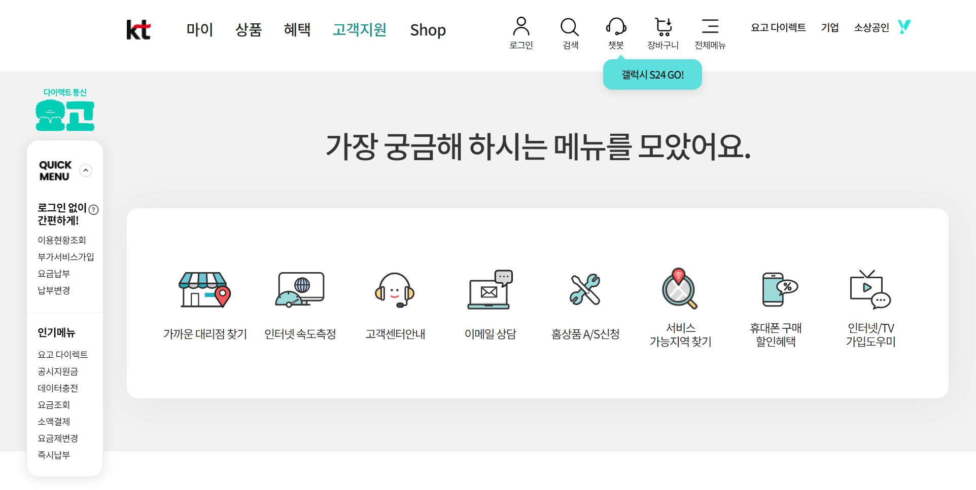 kt 홈페이지 > 고객센터에서 고객센터를 이용할 수 있습니다.