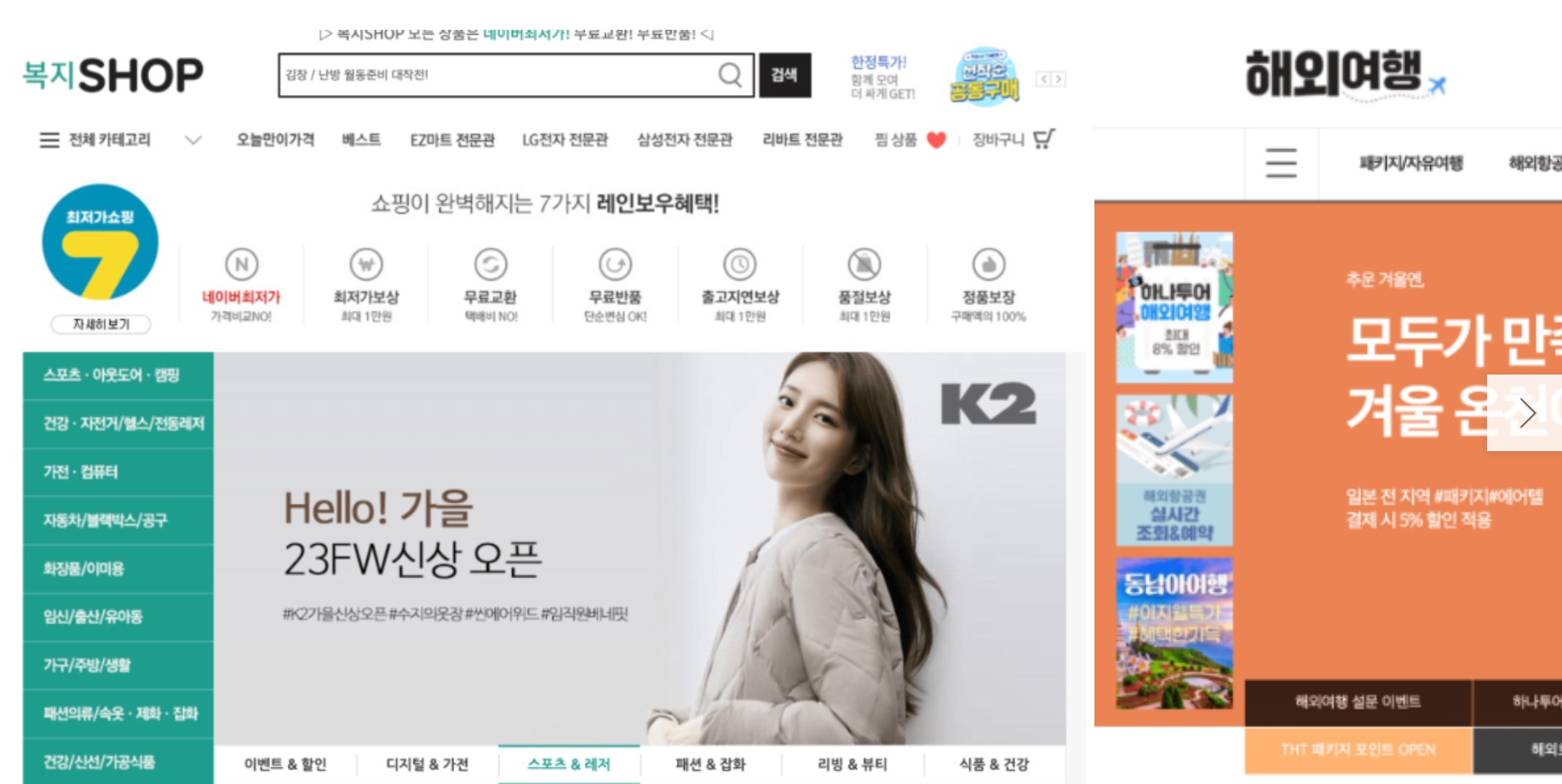 ■ 여행 : 국내 여행, 해외여행에 필요한 항공권이나 숙박시설, 렌터카 등을 예약할 수 있습니다.