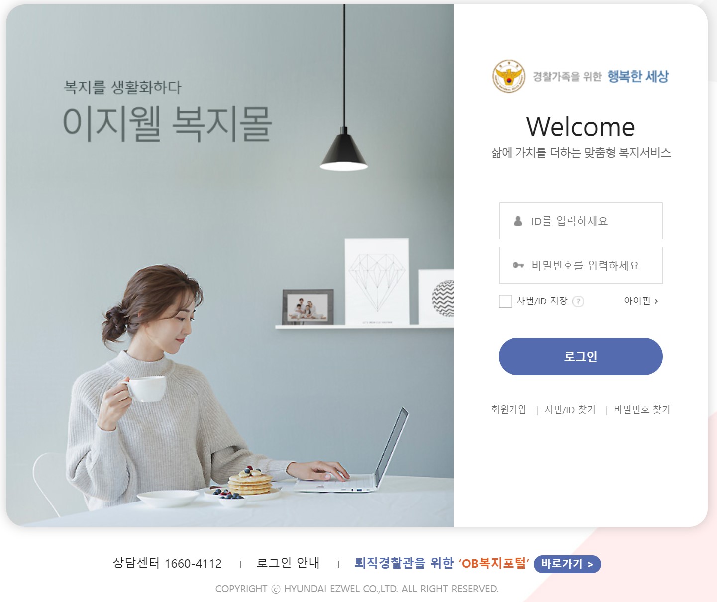 경찰복지포털은 경찰분들에게 지원되는 서비스인데요 해당 홈페이지를 이용하는 경우는 복지 서비스를 이용하기 위함입니다. 군대에서 PX가 있는 것처럼 경찰 복지, 물품 등을 저렴하게 구입을 할 수 있습니다. 경찰복지포털은 대표적으로 이지웰이 있으며 ssl.ezwel.com 퇴직한 경우에는 OB복지포털을 이용 바랍니다. obpolbokji.ezwel.com