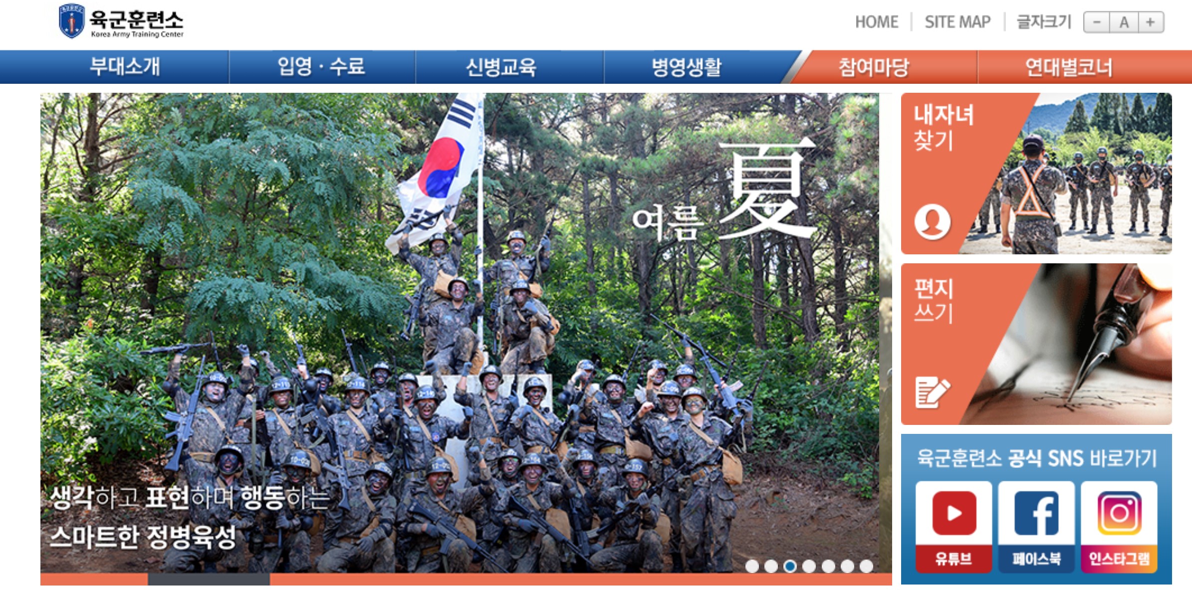 육군훈련소 홈페이지에는 다양한 소식이 준비되어 있으니 아래 육군훈련소 홈페이지 바로가기를 이용 바랍니다.
