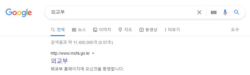 평소 이용하는 포털 검색창에 외교부를 입력하고 검색하면 상단에 외교부 홈페이지 주소가 나옵니다.