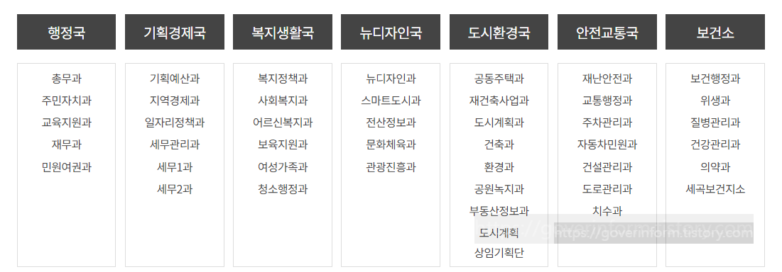 강남구청 홈페이지에는 강남구거주자, 강남주민, 강남구에 사업장이 있는분들께 유용한 정보가 있습니다. 먼저 강남구청 조직도를 보고 어떤 업무를 하는지 한눈에 보는것도 도움이 됩니다.