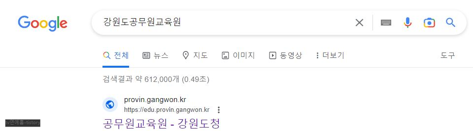 구글이나 평소 이용하는 홈페이지 검색창에 강원도 공무원 교육원을 입력하고 검색하면 홈페이지 주소가 나옵니다. 위에 있는 두 개 주소중 원하는 홈페이지에 접근하면 됩니다.