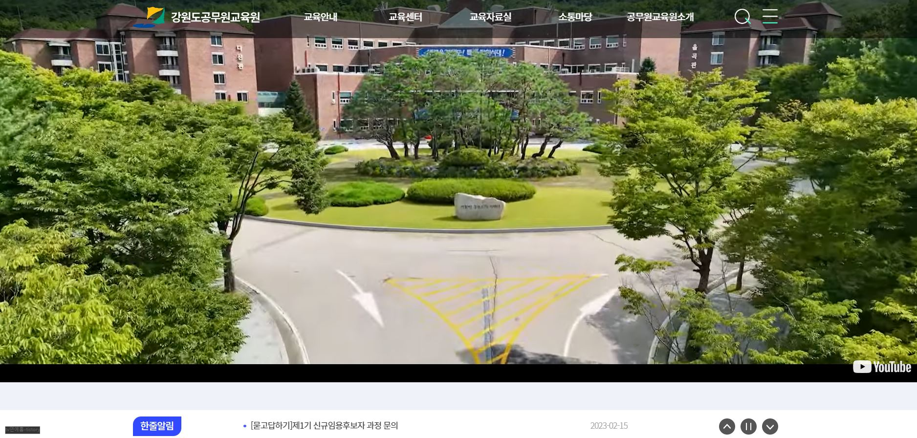 강원도 공무원 교육원 홈페이지에는 교육과정에 대한 상세 내용, 공무원교육원 소식, 포토갤러리, 묻고 답하기 등 다양한 서비스를 제공하고 있으니 필요한 분은 아래 바로가기에서 이용하시기 바랍니다. 문의사항은 하단 댓글창에 남겨주심 답변을 드립니다.