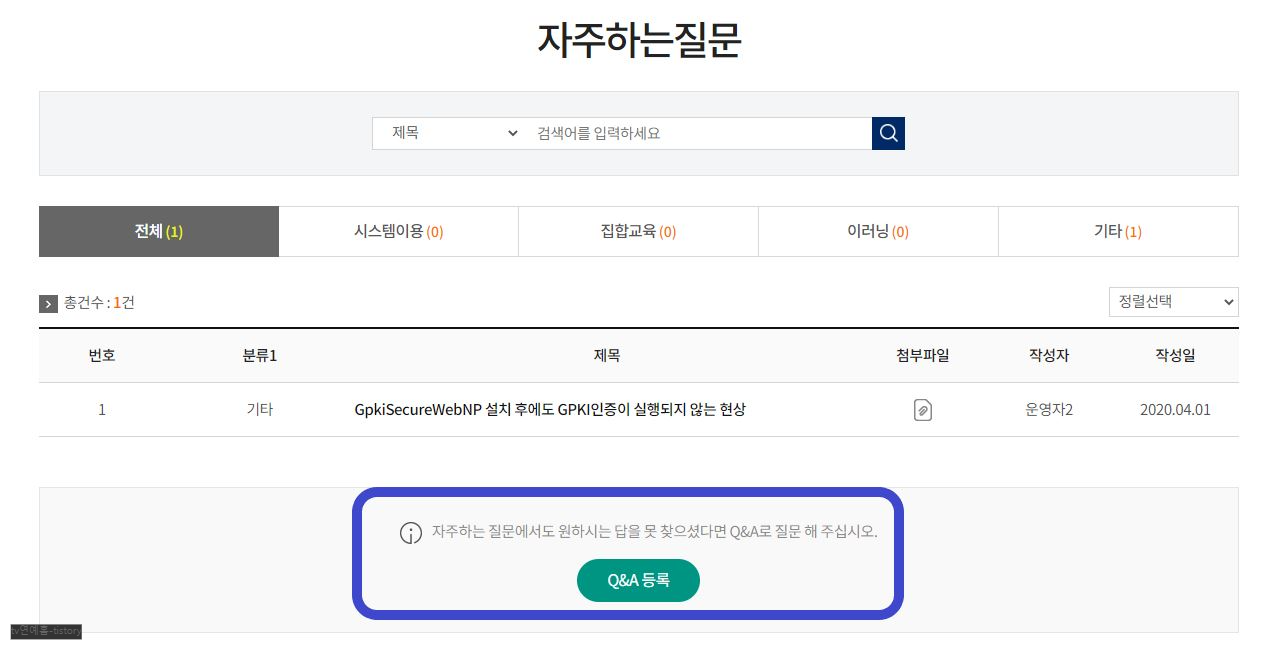 이용과 관련하여 문의사항은 고객지원센터나 자주 찾는 질문을 이용하면 됩니다. 자주 찾는 질문에 있는 질문과 답변을 확인한 후에 원하는 답이 없는 경우 Q&A등록을 터치하여 직접 질문 등록을 하면 됩니다. (교육센터> 교육지원센터>자주 하는 질문)