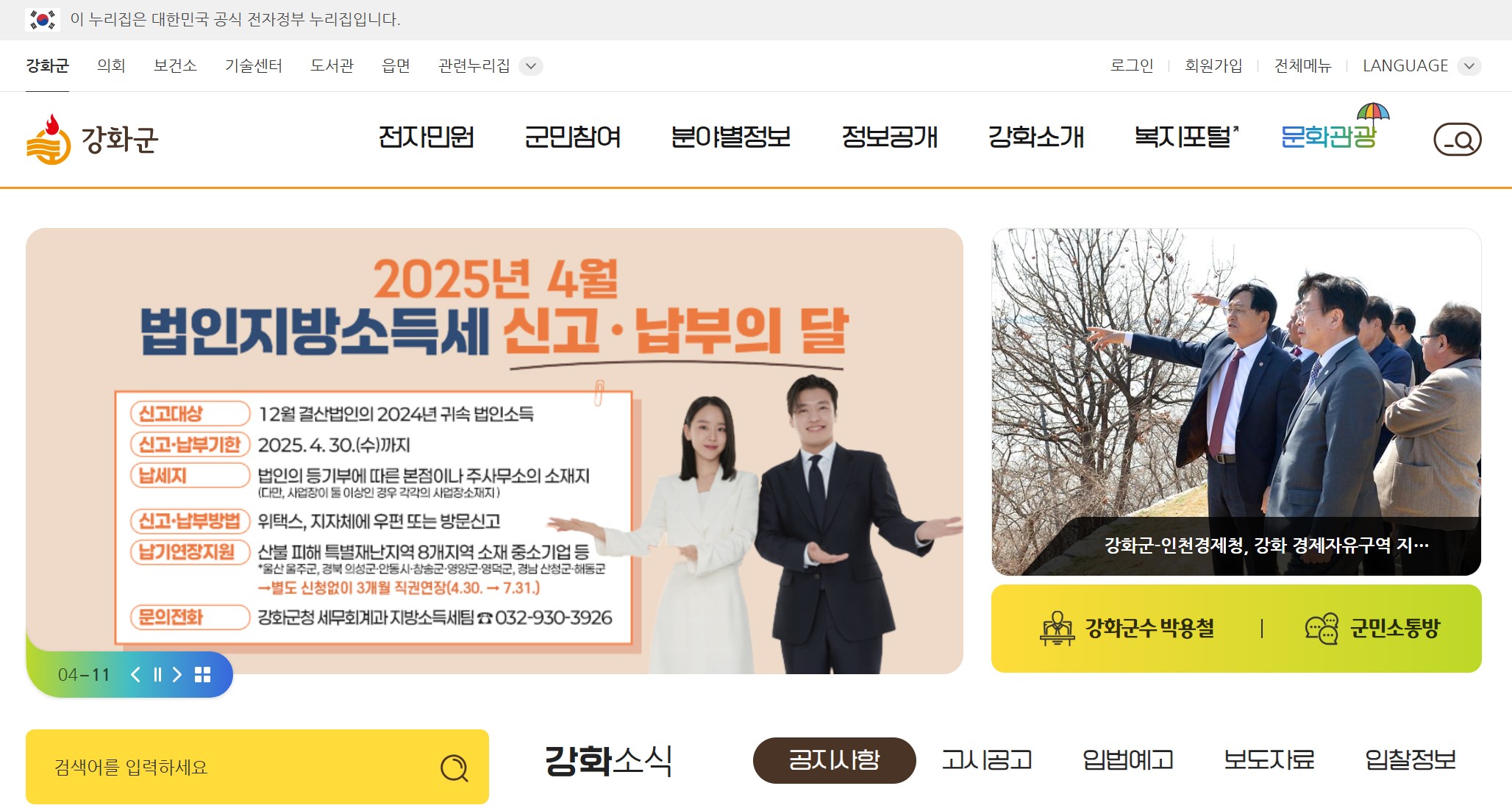 강화군청 홈페이지에는 군민을 위한 다양한 소식이 있는데요,