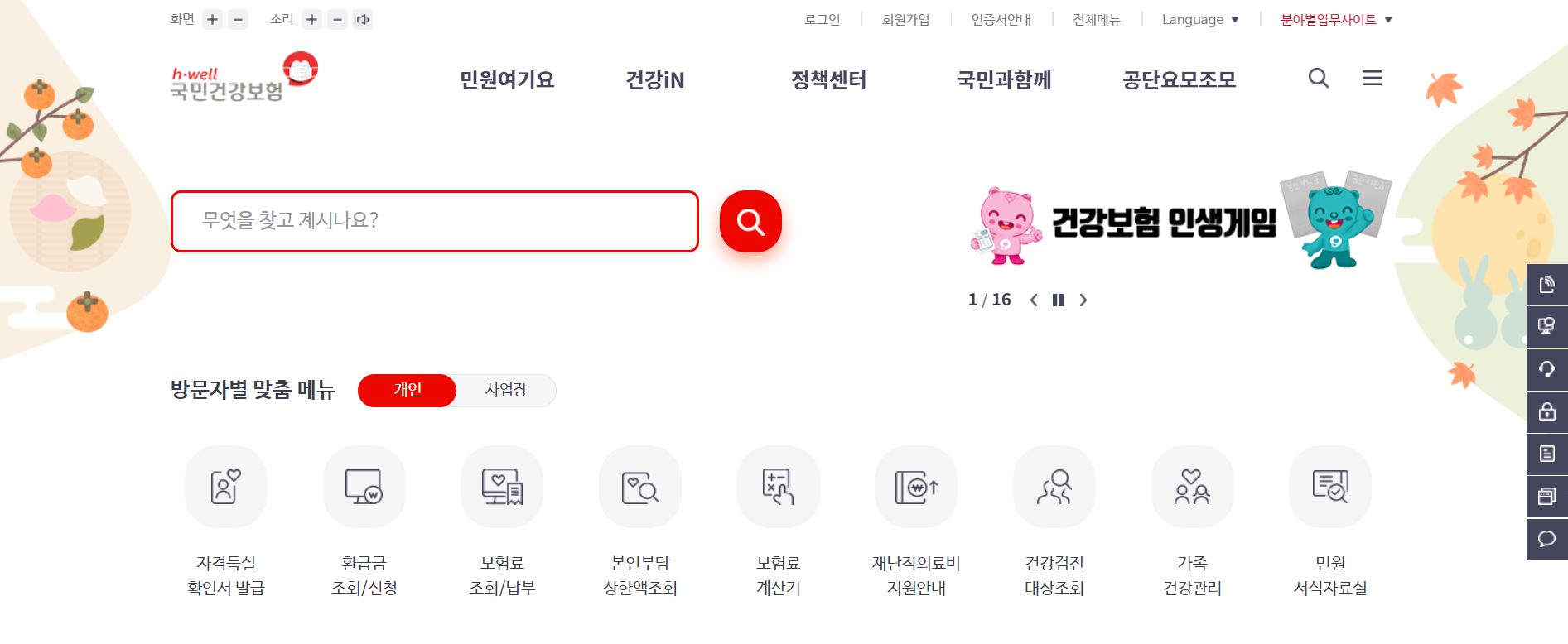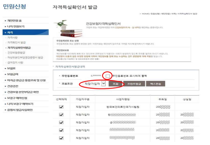 4. 국민건강보험 홈페이지 첫화면 방문자별 맞춤 메뉴에 자격득실 확인서 발급을 클릭합니다.