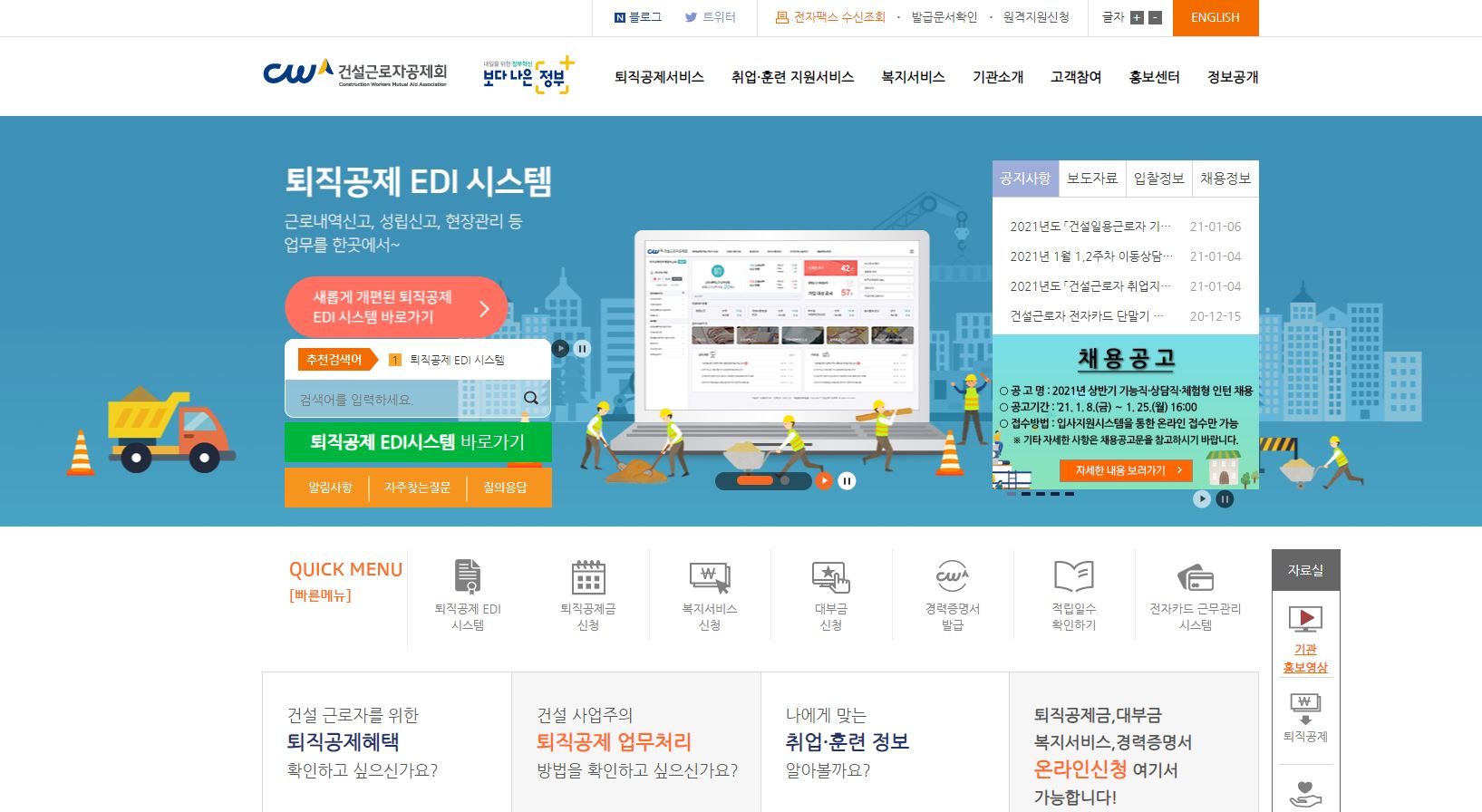 이 외에도 건설근로자 공제회 건설 일용직 퇴직금 신청란에 가시면 아래와 같은 정보가 있습니다.