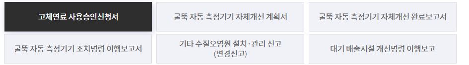 민원신청은 경기도광역환경관리사업소 홈페이지 서식민원에서 신청 가능하고 고체연료 사용승인신청서, 굴뚝 자동 측정기기 자체개선 계획서, 기타 수질오염원 설치 관리 신고 등의 민원이 있습니다. 이외에도 배출시설 및 방지시설 가동개시 신고, 폐수 측정기기 및 배출 시설 개선완료보고서, 배출부과금 조정신청서 민원 신청 가능합니다.