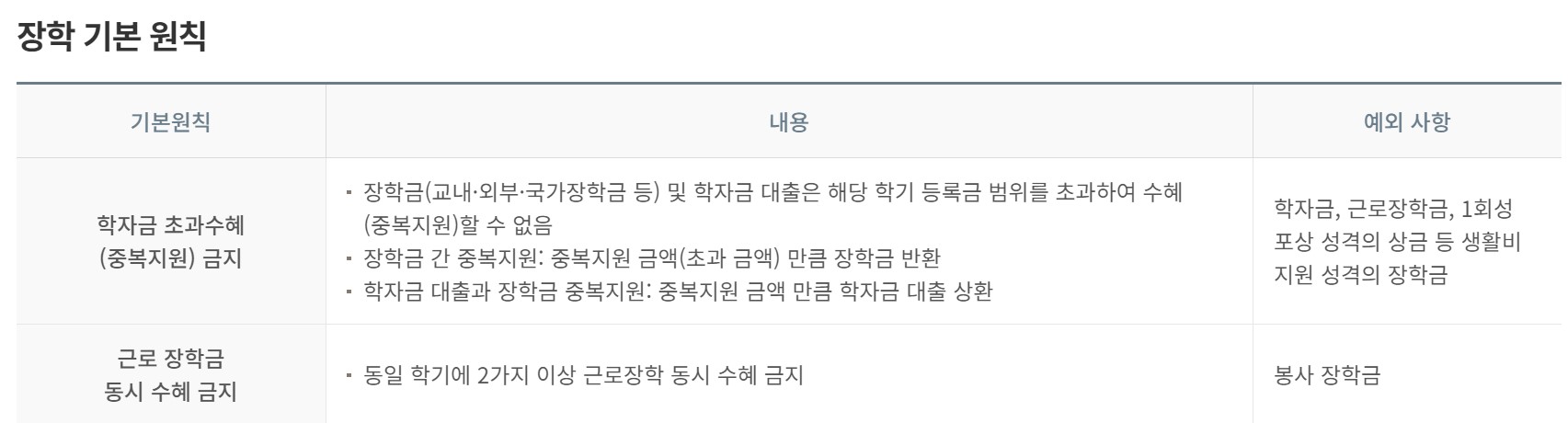아래와 같은 경우 장학생 선정 시 제한이 있습니다.