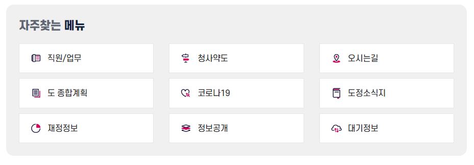 다음은 경상북도청 홈페이지에서 볼수 있는 메뉴입니다.
