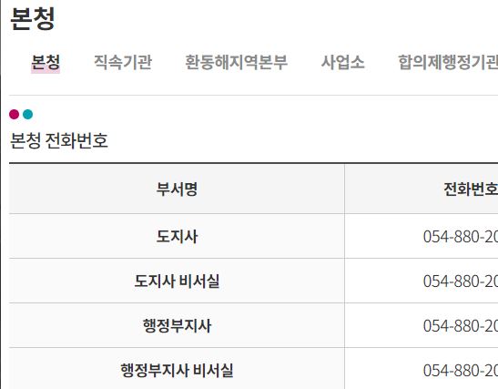 1. 경상북도청 업무 및 담당 직원