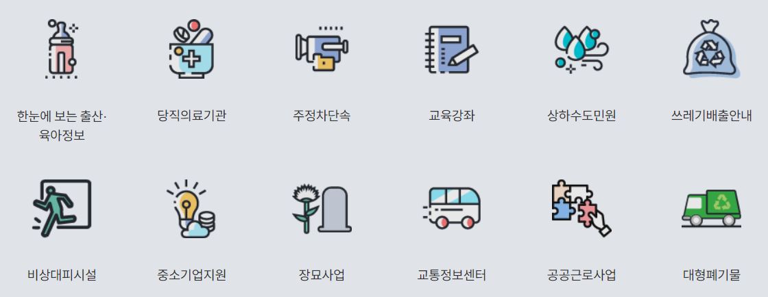 육아정보 당직의료기관 주정차단속 등 시민들이 필요한 정보가 있습니다.