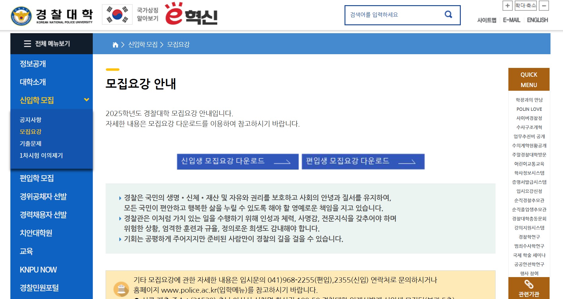 경찰대학 입학처 홈페이지에서 확인할 수 있는 내용은 아래와 같아요.