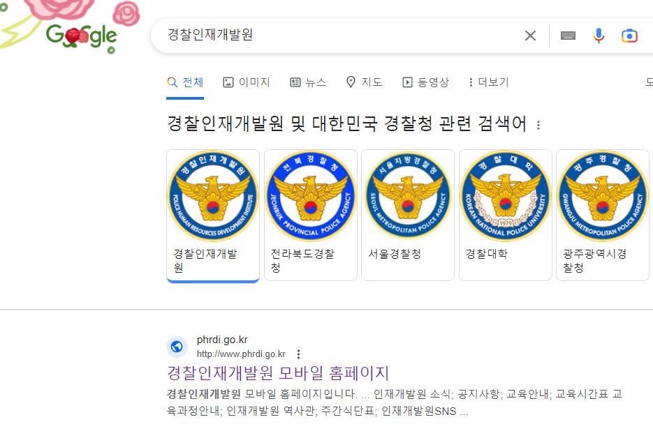 구글이나 평소 이용하는 홈페이지 검색창에 경찰인재개발원을 입력하고 검색하면 경찰인재개발원 홈페이지 이용이 가능합니다. 단 경찰인재개발원 모바일 홈페이지가 나오므로 PC에서 이용중인 경우 하단 바로가기를 이용하면 됩니다.
