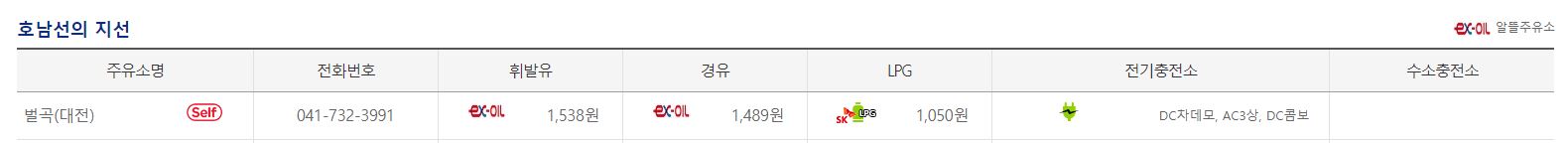 고속도로 주유소 가격 검색 시 노선명(호남선의 지선, 호남선, 평택제천선, 통영대전선,중부선, 중앙선의 지선, 중앙선, 중부내륙선의 지선, 중부내륙선, 제2중부선, 제2경인선, 울산선, 영동선, 순천완주선, 수도권제1순환선, 서해안선, 서천공주선, 서울양양선, 새만금포항선의 지선, 새만금포항선, 부산외곽순한선, 밀양울산선, 동해선, 대전남부순환선, 대구외곽순환선, 당진영덕선, 남해제2지선, 남해제1지선, 남해선, 광주외곽순환선, 광주대구선, 무안광주선, 고창담양선, 경인선, 경부선)을 선택하거나 주유소명을 아는 경우 입력후 검색시 검색결과 확인이 가능하며 주유소명, 전화번호, 휘발유, 경유, LPG 가격과 전기충전소 수소충전소 유무 확인이 가능합니다. 호남선의 지선을 노선명으로 선택하여 검색을 해보니 하단과 같이 주유소명과 전화번호 휘발유가격 경유가격 LPG가격 전기충전소유무 수소충전소유무확인이 가능합니다.