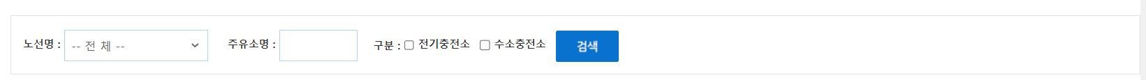 전기충전소나 수소충전소 검색을 원하는 경우 검색시 해당 박스를 클릭하면 전기충전소나 수소충전소가 있는 주유소만 열람도 가능합니다.