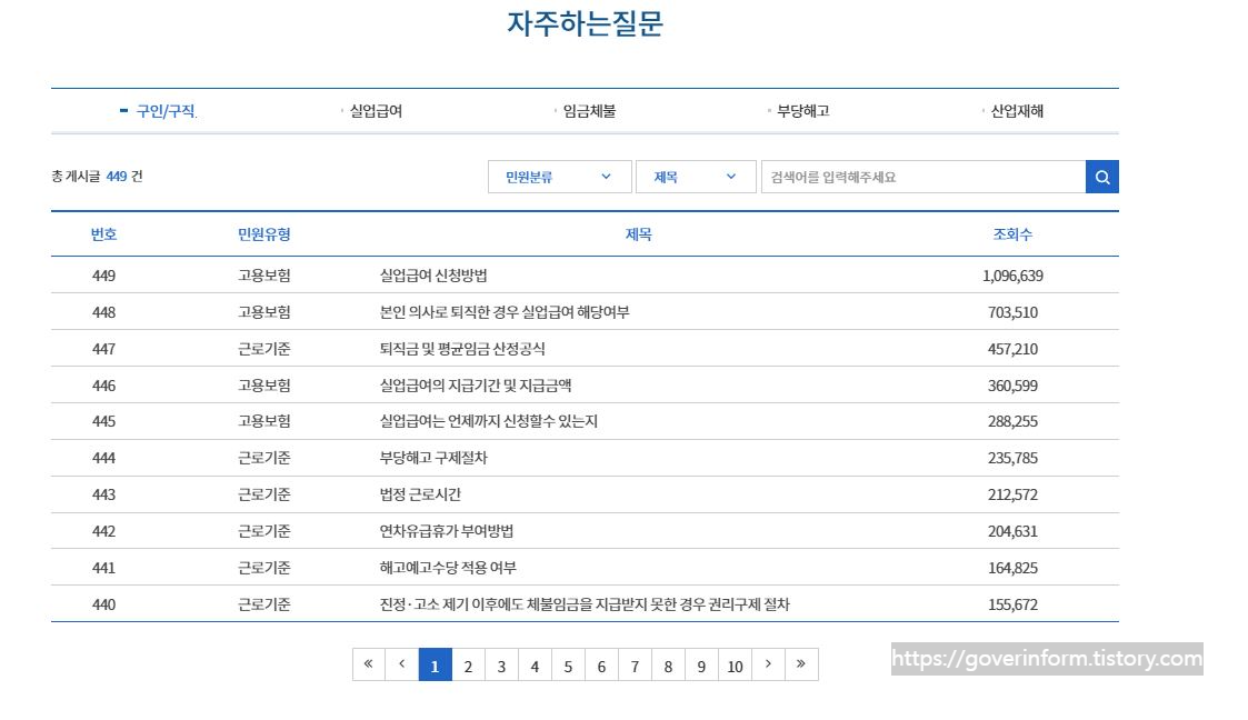 아울러 많은분들이 궁금해하시는 질문들을 정리해보았습니다. 실업급여신청방법, 실업급여해당여부, 퇴직금및평균임금신청공식, 실업급여 지급기간 및 지급금액, 부당해고 구제절차, 법정 근로시간 등이 있습니다. 자주하는질문 메뉴에서 확인하셔도 되고, 추가적인 질문은 빠른인터넷상담 메뉴를 이용하시면 됩니다. 쉽고 간편하게 이용하는 방법을 아래에서 알려드립니다.