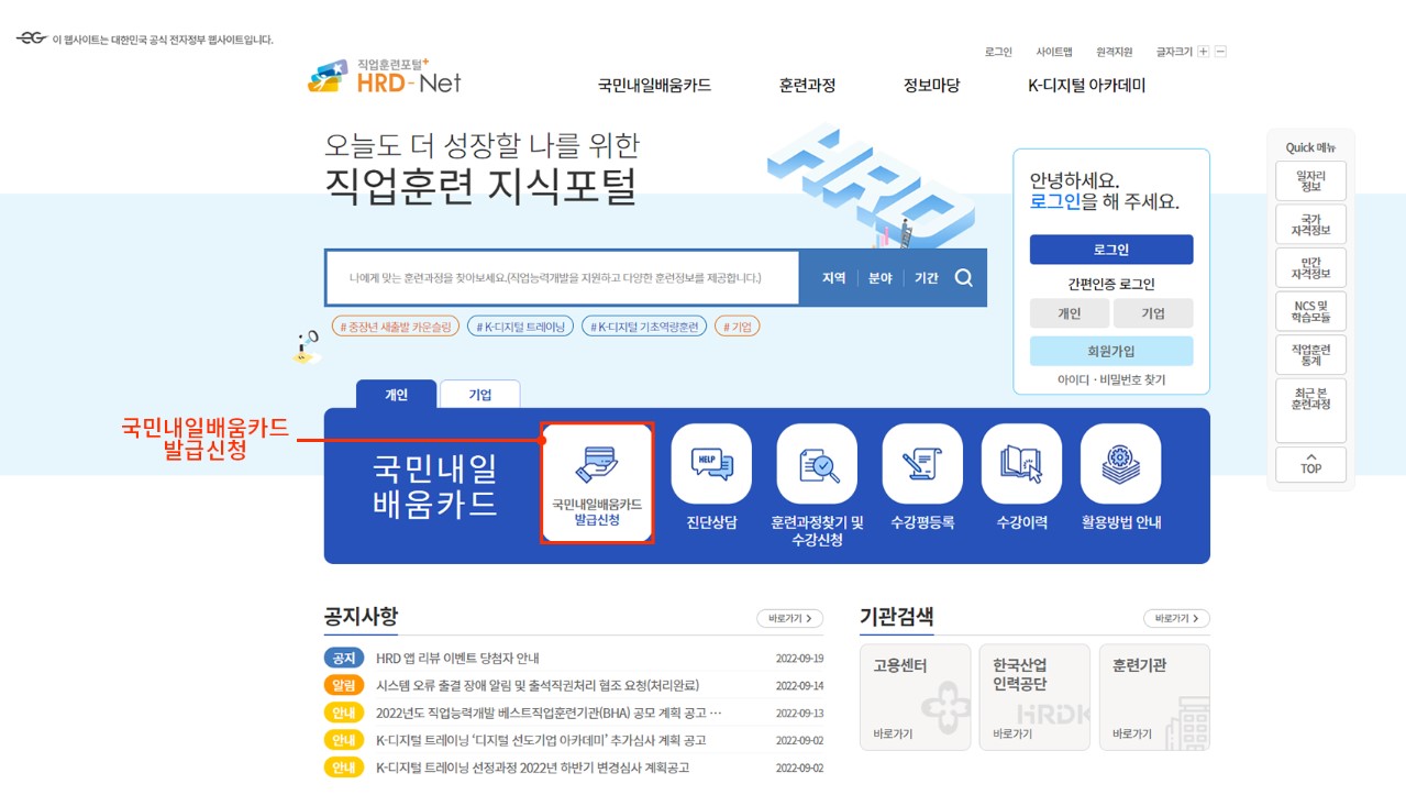 고용노동부 HRD-Net 홈페이지 이용 방법