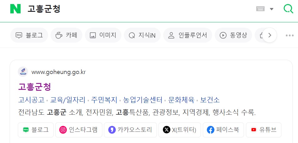 고흥군청 홈페이지에 방문을 하려면 네이버, 다음, 구글 등에 고흥군청을 입력하고 검색을 합니다.
