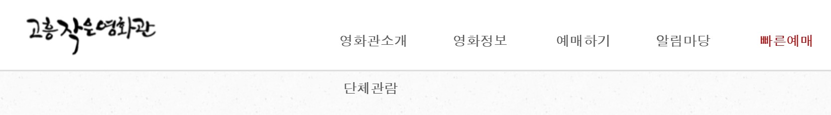 1관, 2관이 있으며 각각 89석, 54석이며 영화 예매는 고흥 작은 영화관 홈페이지(https://cinema.goheung.go.kr)에서 할 수 있으며 빠른 예매도 할 수 있습니다.