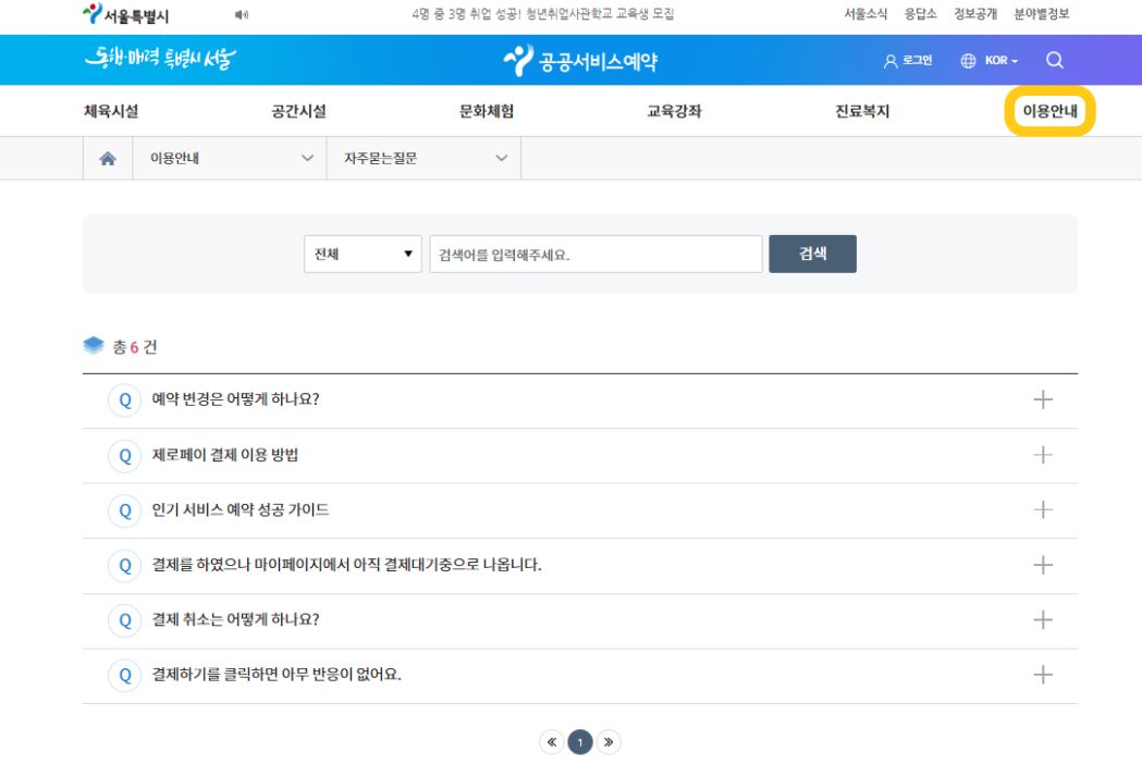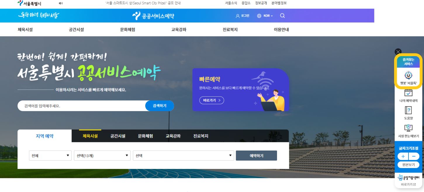 공공서비스예약 서울특별시 홈페이지 바로가기