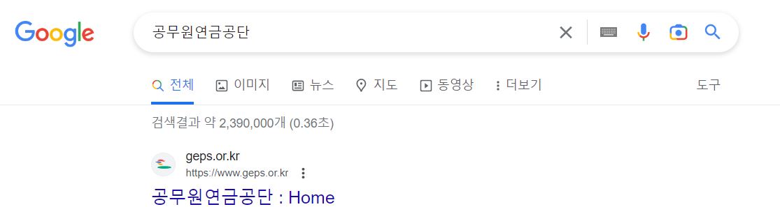 구글 검색창에 공무원연금공단을 입력하고 검색하면 공무원연금공단 홈페이지가 나오고 여기에 접근하면 공무원연금공단 홈페이지가 있습니다.