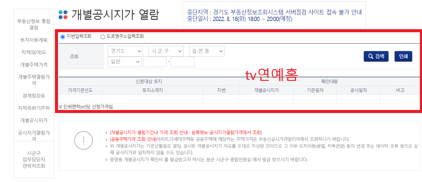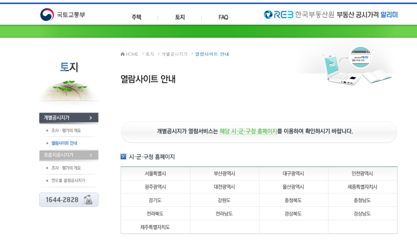 국토교통부 부동산공시지가조회 https://www.realtyprice.kr/notice
