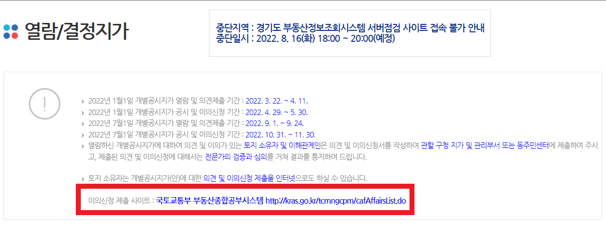 5. 공시지가에 대한 이의신청을 할 수 있는 사이트가 있습니다.