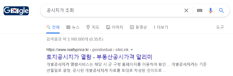 1. 포털검색창에 공시지가 조회를 입력하면 상단에 토지공시지가 열람을 할수 있는 링크가 있습니다. 이것을 클릭합니다. https://www.realtyprice.kr/notice/gsindividual/siteLink.htm