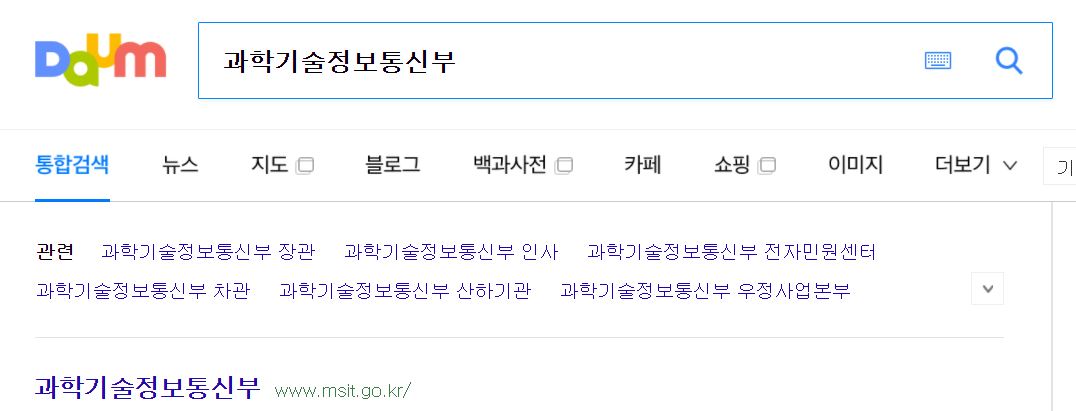 과학기술정보통신부 홈페이지에 접속하려면 포털 검색창에 과학기술정보통신부를 입력하면 됩니다.