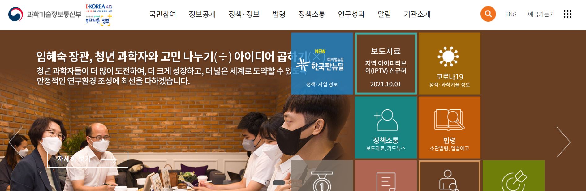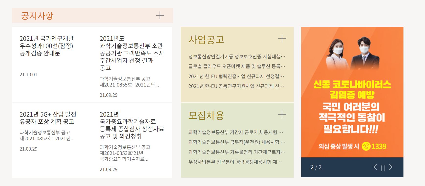아래는 과학기술정보통신부 홈페이지 첫화면입니다.