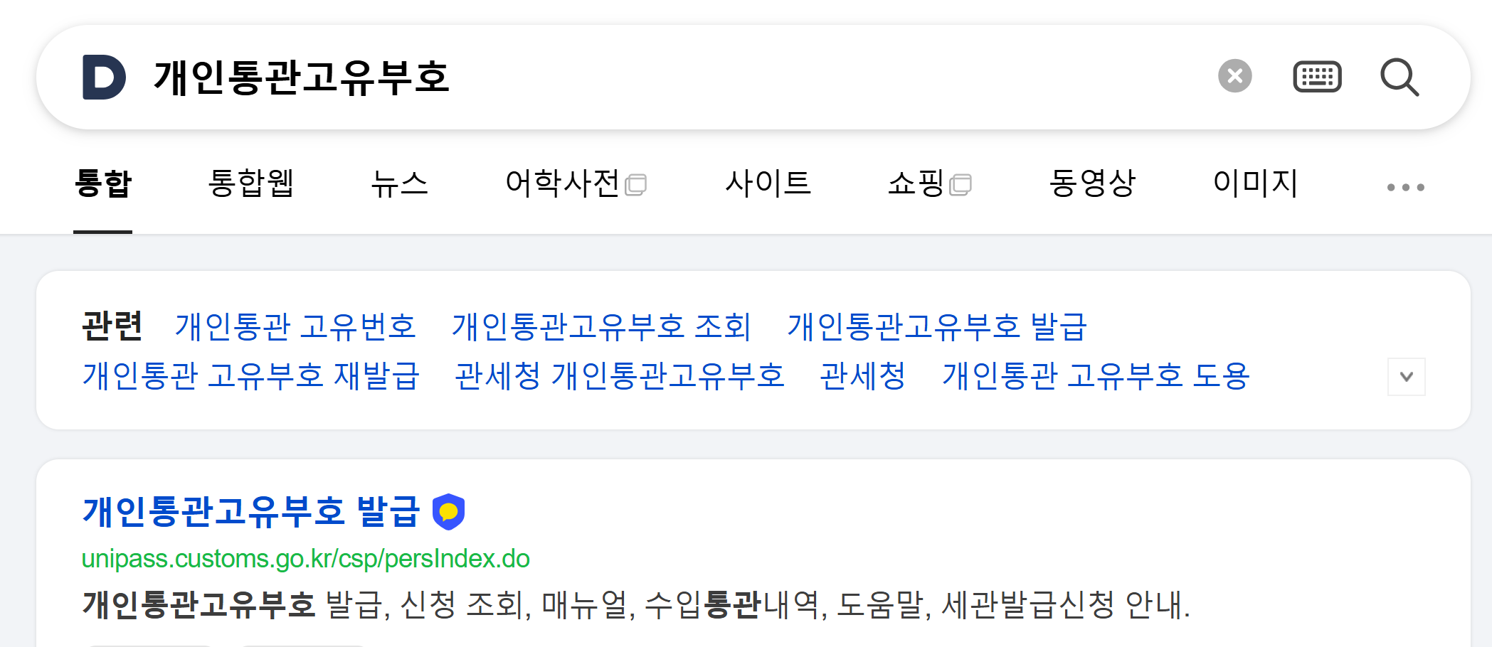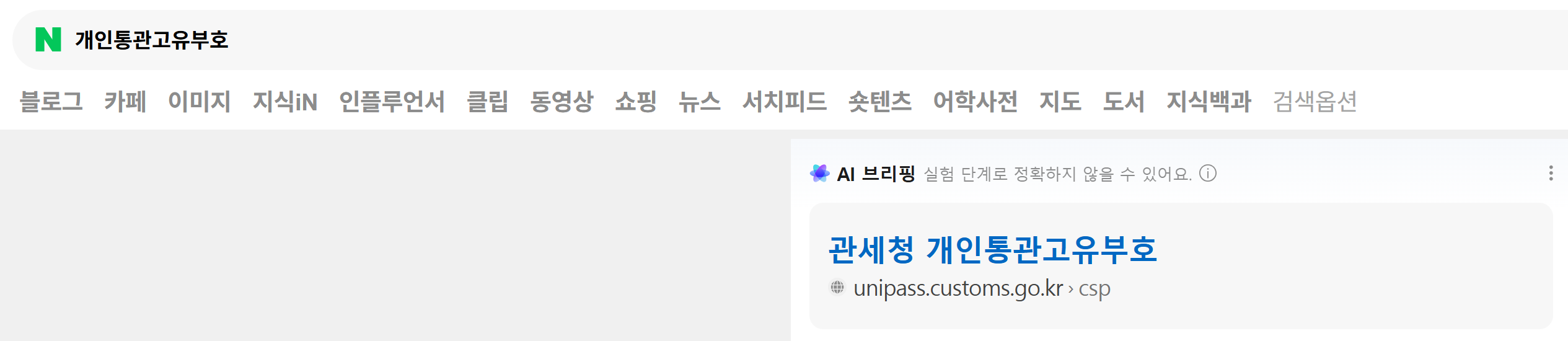평소 이용하는 포털 홈페이지에 '개인통관고유부호'를 입력합니다.