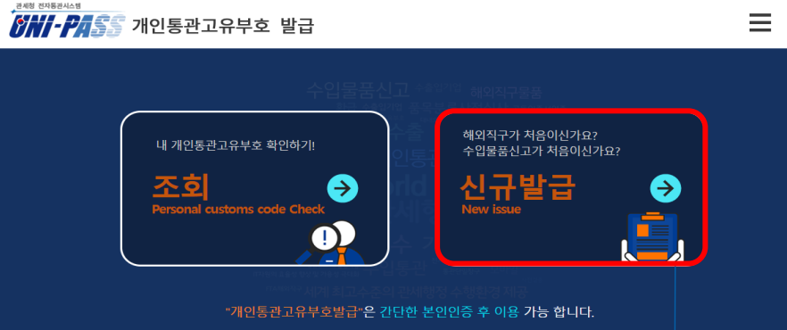 - 개인통관고유부호 발급/조회/변경/재발급은 모두 무료입니다.