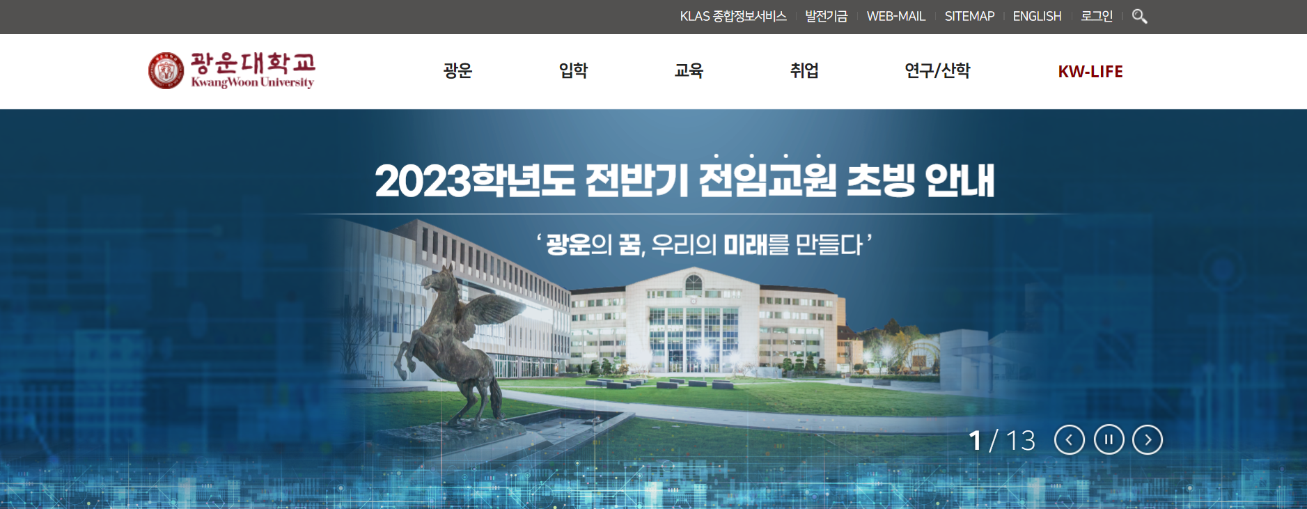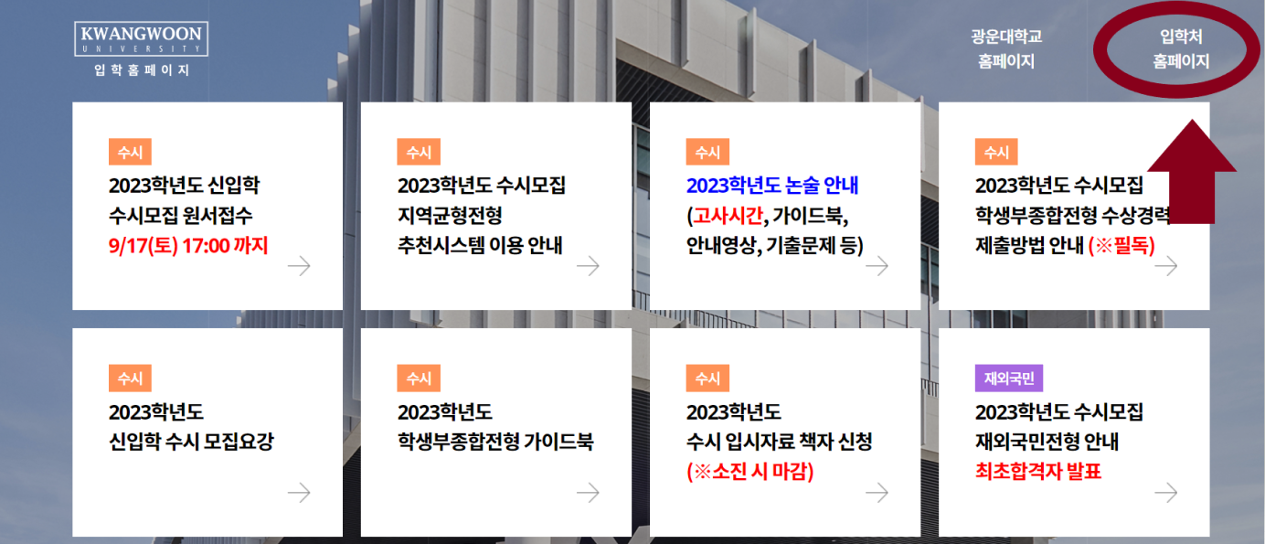 1) 광운대홈페이지-)입학-)입학처홈페이지
